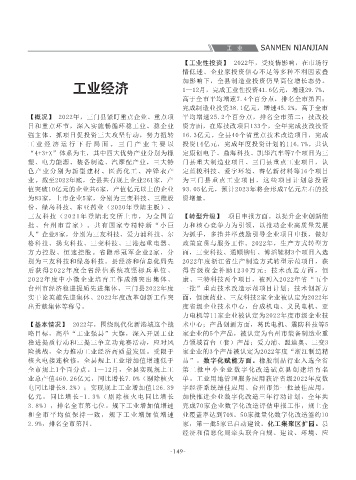 和全市平均值保持一致,规下工业增加值增速 业覆盖率达到70%。50家批量化数字化改造签约10 比重15%(剔除其头山矿后为17.9亿元)。当年入 成套设备、船舶等。2022年,共有规上企业67 作。2020年,省政府批复同意三门经济开发区整 新技术企业26家,主导产业为健康时尚、高端装