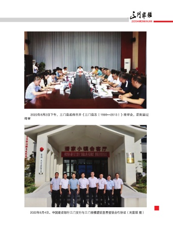 2023SANMENNIANJIAN 2022年8月2日下午,三门县政府召开《三门县志(1989—2013)》终审会,原则通过 终审 ̾͂ 2022年8月4日,中国建设银行三门支行与三门县横渡镇签署整镇合作协议(刘紫琪 摄)