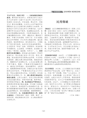 责任落实贯穿起来。四、扎实推进从严管党治企。 好的态势。2022年,三门民爆累计开展教育培训 效果上求进阶。对辖区企业开展“十百千”精准 事务,做到物资保障互通有无、互相支持。统筹 急联动方案》,建立主管部门重要点位常态化巡