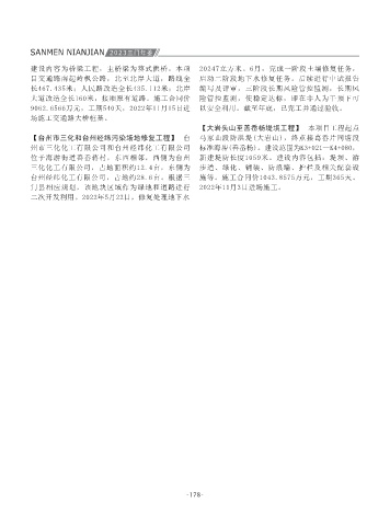 新实践的实施方案》,打造县域文明金名片。依 【概况】 2022年,三门县认真贯彻落实省、市相 应用场景数据采集工作。通过部门违建信息动态 示范路和特色精品道路称号。三门县拟申报小蛇 好农村路”黄四线、亭流线等级提升,石羊溪绿 【天后宫至铁路桥下路段(中段)】 本项目西起 【大岩头山至善岙杨堤坝工程】 本项目工程起点