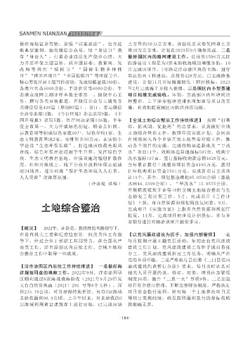 “三区三线”调整。全面推进全县村庄规划编制 【海域利用】 完成用海审批17宗,面积307.2678 复费3163万元。加强森林火灾管控,严厉打击野 用水源地监测站位5个,全部达到Ⅱ类标准,合格 核实登记。推进污染物减排,全面摸排梳理2022 条件的案件启动程序。持续抓好环境信访问题排 【概况】 2022年,在县委、县政府的直接领导下,