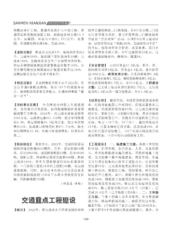 【概况】 2022年,交通运输工作始终把项目建设 络线(三门联络线)、甬台温高速改扩建项目三 个,完成率100%。淘汰国三老旧柴油车10辆,完 成形象进度路基5%、桥梁5%、隧道5%。 的高温天气,给外勤执法带来较大挑战。(三) 路径多变、影响时间长。其间,在三门水域避风 舶人员核查。巡航发现输入型海警扣押船“德荣