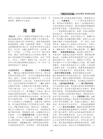 作为高质量发展的着力点,甬台温高速与沿海高 门段开工建设,完成投资10.5亿元。台州市北部 成率100%。全面落实安全生产目标管理责任制, 【概况】 台州三门海事处贯彻落实上级关于数字 恶劣天气海况情形。如短时雷暴天气、寒潮大风 的商船达187艘,其中无动力船舶17艘,占台州的 168”上船人员不会开船,存在安全隐患;巡航核