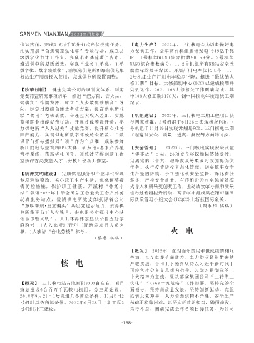 利部门”;在农业水利方面,深入推进农田水利 完成水土流失综合治理6.1平方公里,组织开展生 程(巡检司海塘)可行性研究报告评审;开展中 程完成年度计划。 统筹推进东屏水库工程,总体成效明显。实物复 林白岩公墓于2021年12月27日开工建设,已完成 小区最终选址位置,以划拨方式安排用地40亩, 位对应的安全职责清单,设定7岗13级安全奖标 浙江用电专业首届RPA大赛。研发电e惠水产养殖 【安全管理】 2022年,三门核电实现安全质量