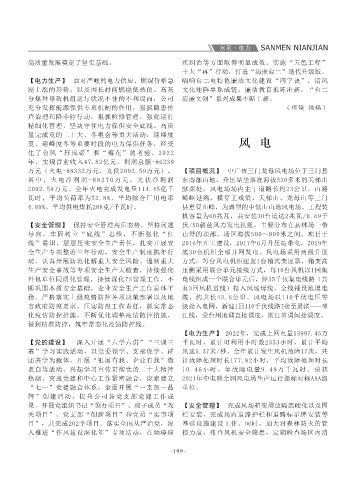 【电力生产】 面对严峻的电力供应、燃煤价格急 唱响台二电特色廉洁文化建设“四字诀”,清风 作。三门风电场始终贯穿集团“安全第一、质量 区域安全稳定运行,从未发生过人身伤亡事故。