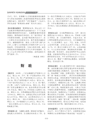 【新能源城建设】 《三门县新能源城核心区实施 点6个,其中,亭旁镇中心卫生院医康养结合服务 年一般公共预算收入32.06亿元,占地区生产总值 推进绩效目标全覆盖。开展绩效自评项目1145个, 新突破、收获新成效。 【社会保险费和非税收入】 2022年,县税务局共 组织“稳企提质”服务,入企问计问需9235户次, 用好监督执纪“四种形态”,深化“三不”一体