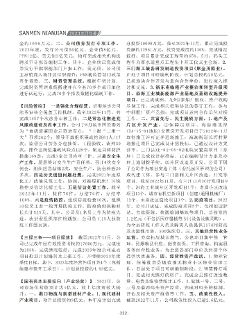 布红黑榜(曝光台)共11期,其中,红榜单位21 防设备有限公司参与制定的项目获得中国标准创 建成放心消费乡村创建2个。推出金融放心贷,放 产大检查,发现并整改问题隐患93229处。 化、精细化、专业化管理。荣获全省企业国有资 产排查工作,在摸底的222条行政事业单位闲置资 【财务管理】 一、融资工作。截至2022年11月, 续建和拟开工项目),计划总投资约4.03亿元。 作 ,目前处于项目可研编制阶段。2.智慧路灯项