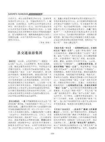 仓”提供用地保障。2.启动中国三门青蟹产业技 万元。3.续建县中小学生研学实践营地项目,8月 万,2022年拟支付800万元,正处于结算审核阶 景应用APP,通过旅游集散中心、景区、优选商家 班的“双值班双响应”制度,严格落实紧急信息 成县城5个开放式小区的建设、海游街道石羊溪水 问题,形成管网运维、抄表收费、供水压力和工
