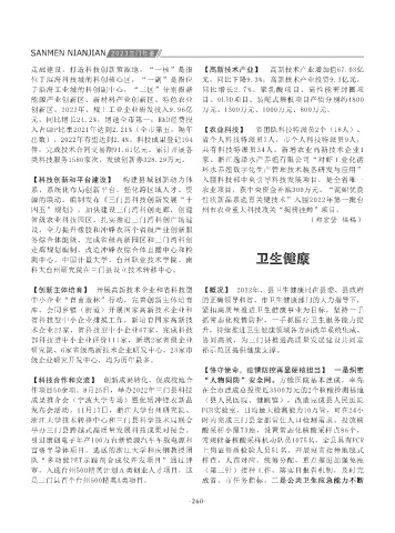 放教育、奥鹏远程教育于一体、熔社区教育、老 务、防诈骗、家庭教育等进礼堂活动,在很大程 【创新主体培育】 开展高新技术企业和省科技型 【概况】 2022年,县卫生健康局在县委、县政府 牌 )12所,健康食堂(餐厅)及健康单位4家,举 签约合作。亭旁镇中心卫生院开通中日友好医院 党建工作。加强公立医院党建工作,推进基层党 阳”、综合演练等培训演练,提升全县疫情防控 制度下发《三门县“无疫社区(村)”建设工作