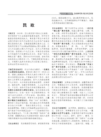 【社会福利】 数字化改革有力推动。一是打造 先成立县婚姻家庭服务指导中心,推出全国首个 数字人社等平台线上投诉平台共办结案件241件, 接结算,提高住院费用直接结算率,推动门诊费 气象相关服务,在三门现代化新港城建设中发挥