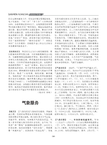 障力度,新建成12个儿童之家。开展全省首批地 2000余位老人提供康养服务4万余次。三是打造 社等多家主流媒体报道。三是强化社会组织审批制 帮扶率动态保持100%。全年养老保险参保人数 万元,事业单位人均总收入18.71万元,2022年无 【医保基金监管】 开展基金监管集中宣传月活 扣医保高质量发展主题,大病保障精准度全面提 雨助力气象干旱解除。深秋寒潮来袭,剧烈降温 警信号24次,雷电预警信号18次,暴雨预警信号10 天气专报41期)。各类气象灾害预警信号205次, 元,同比减少0.82%;贷款发放809户,同比减少 面工作。2022年,六大银行共新拓企业71户,人