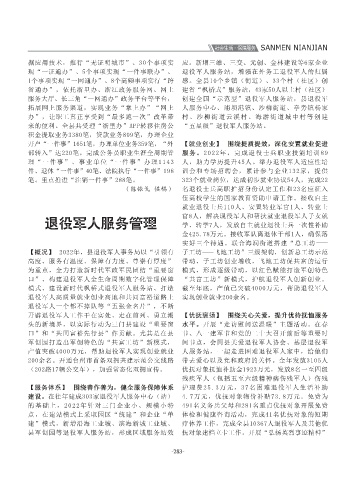 部转入”达220笔。完成公务员职业生涯全周期管 服务。2022年,完成退役士兵职业技能培训89 零散烈士墓整修,整修资金合计72万元,用实际 家庭签订军人家庭拥军服务协议,继续设立第三