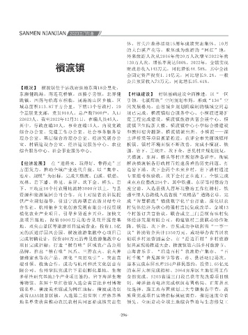 实到行动上。全面深化“锋领物流”党建联建机 【经济发展】 完成规上工业产值45478万元,同 的批示肯定。大力实施教育振兴工程,全面改造 里,其中陆域面积180平方公里。辖39个行政村、 获全省考核优秀。 工坊建设为抓手,扎实推进“扩中提低”行动, 项目完成招标;打造“横有味”区域农产品公用 促共富现场推进大会、横渡镇第六届乡村旅游节、 岁以上老人防疫包5000份,平稳度过疫情高峰期。 稻田研学基地等项目。 积案成功化解4起,“12345热线”、初信初访等 究院建立长期合作,培育树立方俊、柯孔柱等乡