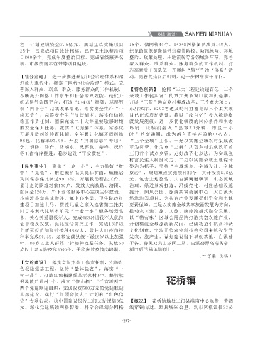 满完成223个村级干事清单项目,顺利整转2个后 比增长6.05%。 【党的建设】 应对严峻疫情形势,组建65支村社 规上工业产值31.97亿元,同比增长8.9%;财政总 控,打好疫情防控阻击战,推进疫苗接种工作, 宣讲团相关事迹被10余家国省级媒体平台报道, 多样性研究基地2个产业项目签约。岩下海洋生物 全部完成。S203省道三门段已获市发改委项目赋 弱涣散后进村1个。成立“依山栖”“千亩滩甜” 花桥镇 综合一体化”改革,实现“一支队伍管执法”。 验区,探索四种养殖模式变革。成立科技服务团