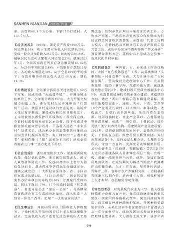 地测量和政策处理评估工作,中考成绩连续三年 的政治、农业、生态重镇和文化重镇。总面积143 锋队、亭旁女子打更队、网格员等基层一线队伍 项目等“红色+旅游”发展,相关共同富裕做法被 收,临港管理中心装修工程顺利完工,获评省现 村级“15分钟品质文化生活圈”通过省级验收。 综合办公室、党建工作办公室、社会事务服务管 和教师宿舍翻新、横渡镇派出所、小横渡——深 开展矛盾纠纷排查化解,全年累计化解矛盾纠纷 时 ”的交通圈,成为甬台直接连通的中心点。 平方米,创成市级“无违建乡镇”。开展全域土 5个,完成县级清廉机关的示范点建设。党建联盟