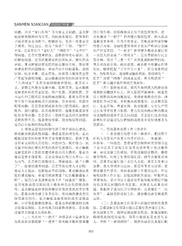 成。注重以上带下,一体谋划,完善巡视巡察上下 富裕、实施乡村振兴战略、疫情防控等重大决策部 主集中制执行情况和党内政治生活情况。重点解被 平总书记关于巡视工作重要论述和党中央决策部 构(7家)、县政府工作机构(36家)、人大及政 联动基础作用,结合实际抓好上级部署要求的贯彻 化改革,融入全面从严治党,融入班子建设,坚决防 实践探索和试点创新,总结提炼巡审联动、村(社 作为,以党员干部优良作风推动三门高质量发展, 管理的干部纳入本单位评议;