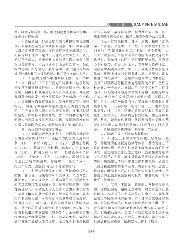 成。注重以上带下,一体谋划,完善巡视巡察上下 富裕、实施乡村振兴战略、疫情防控等重大决策部 主集中制执行情况和党内政治生活情况。重点解被 平总书记关于巡视工作重要论述和党中央决策部 构(7家)、县政府工作机构(36家)、人大及政 联动基础作用,结合实际抓好上级部署要求的贯彻 化改革,融入全面从严治党,融入班子建设,坚决防 实践探索和试点创新,总结提炼巡审联动、村(社 作为,以党员干部优良作风推动三门高质量发展, 管理的干部纳入本单位评议; 组织纪律涣散、不遵守工作制度,脱岗离岗、迟到 社会评议、领导评议中的“满意”“基本满