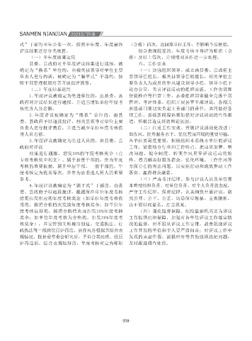 SANMEN NIANJIAN 2023三门年鉴 强和长三角城市的战略合作和项目互动,共同举办 创作品,提升优秀文艺作品的社会经济效益。 对有关单位开展延伸巡察,接力做好省、市、县三 现代化评价指标体系。强化公共文化服务绩效意识, 合评价公共文化服务水平,建立信息发布和奖惩机 村居民需要的便捷生活服务圈;通过强村公司发展 升行动。实施“育新农、促共富”农民大培训行动,