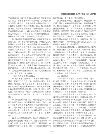 得多项表彰或受多次批示肯定的,可累计加分。 先进单位、先进人员和“佛系”单位、“躺平 单位:县经信局、县财政局)。加大技术技能人员 县委组织部、县人力社保局)。大力引进国内外院 专项激励政策,建立健全工程师引育留用工作体系 10.加大优质教育资源供给。每年新招录中小 快保障性租赁住房建设,2024年计划筹集保障性租 情况的督查督办,对落实不力、工作推进迟缓的及 (一)田长制设置。按县、乡、村三级设置田 员。