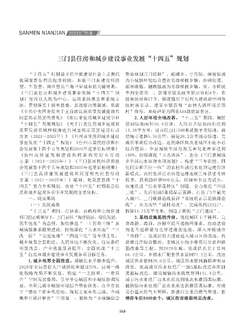 “十三五”时期,三门县住房城乡建设事业发 划。 续以“绿水青山就是金山银山”理念为引领,大力 桥梁、隧道、燃气、排涝等安全防护及城乡防灾减 为重点,优化产业结构,壮大产业规模,提高产业 清洁能源供应,基本实现管道燃气“镇镇通”。 广力度,不断提高建筑工业化水平。大力推进工程 体系,实现事前、事中、事后全流程闭环管理。完 面实施城市有机更新。以三江口城市核心区、老城 型,高标准落实“功能便民环境美、共享乐民生活 相协调,五年建成重点主次干路约2公里、建成支 格做到配套管网长度与处理能力要求相适应。到