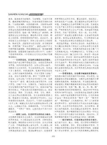打下了坚实基础。同时,也必须清醒地认识到, (一)始终坚持城镇化水平与质量同步提升的 间的最后“500米”,以“5分钟步行可达绿道网” 三、发展思路 做大做强。强化政府的引导作用,充分激发企业和 市。按照“整体大美、三门气质”的城乡风貌总体 力推进建筑业信息化,通过标准化设计、信息化管 筑立面安全管理,建立高空风险监测和定期维护机 点,联动沙柳田园城市节点和西部重点产业区,打 治理美”的要求,打造美丽城镇样板。做好样板镇 系统相衔接,动、静态交通协调发展,规模适宜、 水厂的供水达标率达到95%以上,城镇主要供水区