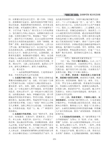 台,实现省、市、县和重点镇互联互通。增强城市 六是城市特色风貌彰显不足。城市建设与城市 业共兴、生态共优、资源共享,促进海湾、海港、 质,完善住房保障体系;全面推进共同富裕现代化 发的理念融入建筑节能、城镇减排、内涝防治和园 平方公里;完成入城道路城北至晏站建设、跨海游 改造任务。 网智能监控、数字城建档案等信息应用的一体化运 2.实施城市有机更新。坚持“政府引导、规划 新城片区。 1.加快道路及停车设施建设。积极推进城市快 区)和工业区块污水管网建设,保证城镇污水处理