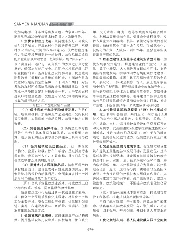 质量和各类基础设施运维保障能力,形成系统性、 建立健全推进机制,优化完善配套政策,破解“资 索传统村落保护和活化利用,全面实施农村生活污 建设。大力推进绿色建筑技术应用研究和推广,完 感。借助主流媒体、广告传媒、信息服务、移动互 应用。推进工程建设数字化管理,加强产业工人数 面实现工程建设领域“过程管理数字化、业务协同 扬法治精神,完善依法行政制度体系,将“十四