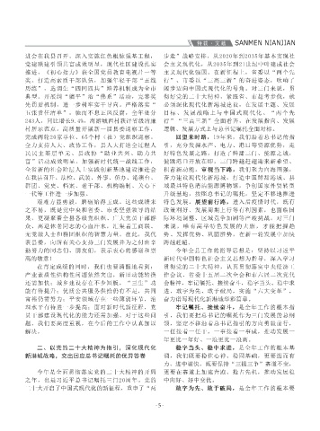 (三)致力转型升级,产业激发新质效。扎 (六)聚力共富先行,民生增添新福祉。实 完成两轮20家单位、65个村(社)党组织巡察。 回望来时路,19年来,我们沿着总书记的指 预算收入、居民人均可支配收入与经济增长基本 全产业链理念开发优势农产品,加快创建国家农 (三)实施动能变革,打造更强发展引擎。 善、携手共富”的良好氛围。 通等领域综合治理,全力“遏重大、降较大、减 四、加强党的全面领导和全面从严治党,为