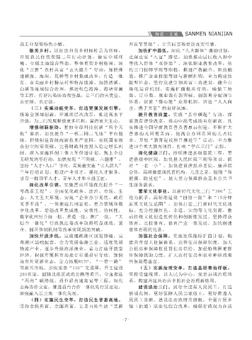 为牵引,奋发进取,攻坚克难,全县发展稳中有 确立”、坚决做到“两个维护”。特别是把学习 成省级文旅特色型样板镇,珠岙、浦坝港创成省 和医疗救治,最大程度守护群众生命健康安全。 员干部建设现代化的能力还需加强。对于这些问 引,我们要把总书记的嘱托作为三门发展的总纲 发展。 过、十里青山入画来”生动图卷。深化“五大攻 物流产业、逐步升级海洋渔业。着力打造开放型 公租房和保障性租赁住房供给。加强特殊困难群 拳”,让担当者放手干、给实干者定心丸。 大力支持保障人大、政府、政协、监委、法院、