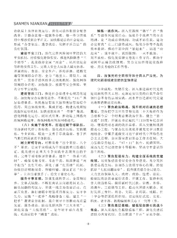 金2.51亿元、降本减负7.7亿元,“万名干部助万 拟养老院成为全省共富最佳实践,婚俗改革成为 民民主基层单元、县政协“助业共兴、助力共 好特色发展之路,打造了鲜甜三门、能源之城, 果”,“六大突破”即全社会R&D占比突破2.6%、 三产向优而进。发展全域旅游,构建以蛇蟠 开放,为三门发展释放更多红利、赢得更大主动。 索教育评价改革,推动中高考成绩再创新高。扎 领域综合治理,加强粮食、能源等安全保障,坚