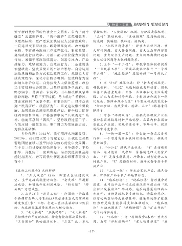 深入实施科技企业“双倍增”行动计划,新培育 江口城市阳台建设。实施5个重点区块有机更新, 加强社会保障。坚持就业优先,新建共富工坊 增强忧患意识,持续创新社会治理、推动治理变 行动,增强干部政策应用力、创新专注力、产业 重大信访问题等七张问题清单。 14.农业“标准地”:是指以推动农业高质量 16.“136”格局:即矛盾纠纷10%化解在县 常委会积极探索、不断加强和改进经济工作 使命