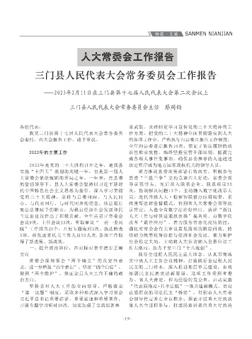 要求,及时开展规范性文件备案审查工作,依法 常委会牢牢把握新时代地方人大工作新要 感谢! 履职担当,切实打好履职组合拳,为全县经济发 门模式”,系统推进“站庭一体共建”“检察巡 新、担当作为、团结奋斗,为三门高质量发展增 社会高质量发展和共同富裕先行,为我县现代化 工作汇报,党政领导积极参加政协重要会议和活