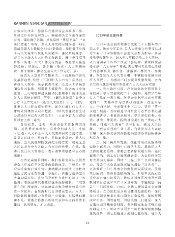 查《残疾人保障条例》实施情况,促使政府落实 高质量办理代表建议。完善交办、督办和反 法民意通”等省、市人大开发的应用场景,归集 2023年是全面贯彻落实党的二十大精神的开 业教育、中医院建设等议题开展调研,视察宗教 专门委员会工作的参与度,支持和保障代表更好