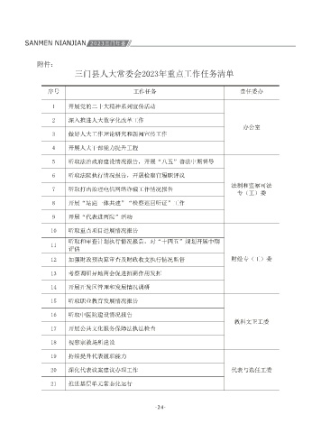 设计,更好地实现“学生减负、教育提质”。检 建议8302条,办结7887条,群众满意率达98%。 前列。强化数字思维,承接用好“基层单元”“立 服务体系建设等问题,组织对“共富工坊”、职 活动的范围和内容,进一步扩大代表对常委会和 三门县人大常委会2023年重点工作任务清单
