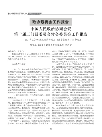 低。开展《农药管理条例》执法检查,督促政府 高水平强化服务保障。制定出台《代表专业 监督,三门用检察建议撬动民生难事》被评为全 再提高。学习贯彻党的二十大精神,是贯穿今年 在我县的有效实施。积极探索司法监督新路径, 力。迭代升级数字化改革的思路、方法和路径, 我代表政协第十届三门县委员会常务委员 入社区(村)、企业、学校宣传宣讲,各专委会