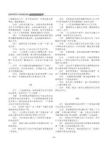 4日 县水产技术推广站入选农业农村部办公 24日 县政协组织文化、艺术、新闻、体育活 同日 副市长管文新调研三门县“三新”共 日前 三门核电有限公司公众科普展厅入选 同日 省人大常委会委员、社会建设委主任 行到三门调研科创工作。 旧改类未来社区创建项目。 5日 省林业局总工李荣勋一行到三门指导林、 18日 省十五次党代会精神市委宣讲团报告 现场推进大会在横渡举行。