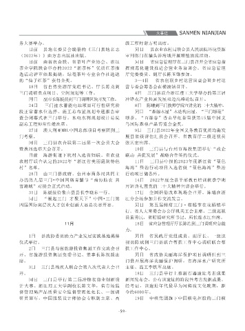 大事记 3月 SANMEN NIANJIAN 门调研政协工作,并召开座谈会。市政协副主席 《台州市临港产业带发展规划》意见征求会。 县北部湾区集团现代建材产业项目配套码头开工 心揭牌仪式举行。 6月 调研“海洋经济和‘碳达峰碳中和’背景下的高 实践基地入选省产教融合实践基地,为台州唯一