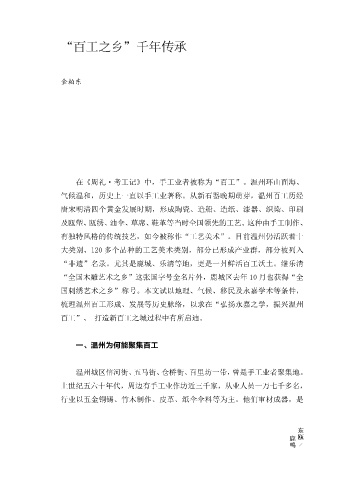 “非遗”名录。尤其是鹿城、乐清等地,更是一爿鲜活百工沃土。继乐清