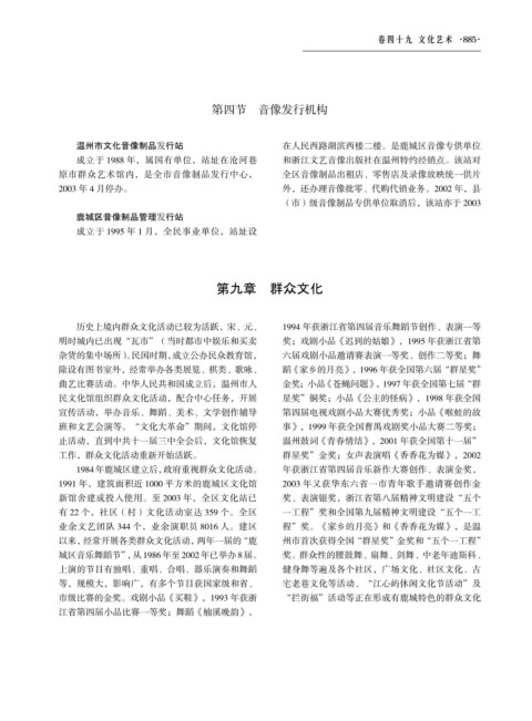 . 884 . 温州市鹿城区志 卷四十九 文化艺术 . 885 .