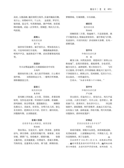 风光招此双筇枝,联吟扶路兴自奇。 地抛春去。春去也,留难住。 五鬣乔松。直炎能傲夏,冷惯凌冬。看霜天拳鹤, ①此词作于 1910 年 1 月 21 日。杜隐居士即张