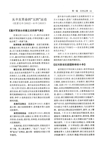 从 辛 亥 革 命 到 “五 四 ”运 动 月 8 日 来 嘉 兴 ,受 到 广 大 群 众 的 热 烈 欢 迎 。上 午