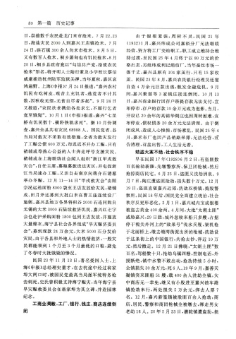 日 ,海 盐 灾 民 2000人 到 嘉 兴 王 店 镇 抢 米 。 7月 (1932)1月 ,嘉 兴 纬 成 公 司 嘉 裕 分 厂 无 法 继 续