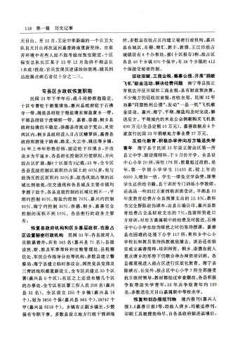 敌 占 区 扩 展 ,据 《十 区 报 告 》记 载 :33年 ,全 专 区 中 心 小 学 20所 ,保 校 176所 ,数 量 超 过 战 前 。是