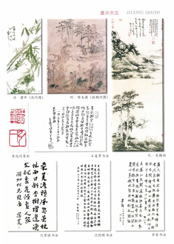 嘉 兴 市 志 JIAXING SHIZHI 清 · 蒲 华 《 风 竹 图 》 明 · 项 圣 谟 《 放 鹤 洲 图 》 李 叔 同 篆 刻 王 蘧 常 书 法 元 • 吴 镇 画 沈 曾 植 书 法 沈 钧 儒 书 法 茅 盾 书 法