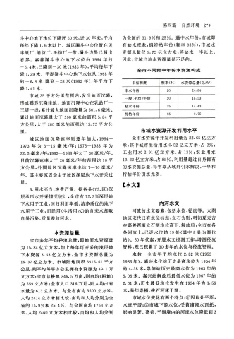 城 区 地 面 沉 降 速 率 则 逐 年 加 大 ,1964— 全 市 水 资 源 年 开 发 利 用 量 为 22.65亿 立 方
