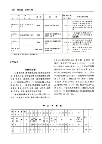 30— 60天 无 雨 ,大 旱 60— 90天 无 雨 ,特 大 旱 无 有 12次 ,清 初 (17世 纪 )最 多 达 13次 ,自 南 宋