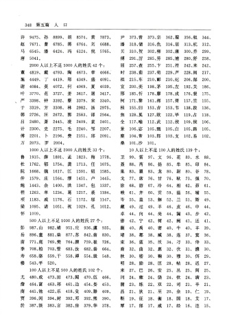 1000 人 以 上 不 足 2000 人 的 姓 氏 33 个 : 10 人 以 上 不 足 100 人 的 姓 氏 139 个 :