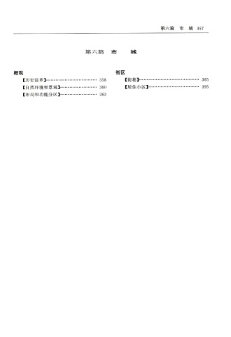 第 六 篇 市 城 第 六 篇 市 城 概 观 街 区 【历 史 沿 革 】.............. 358 【街 巷 】................. 365 【自 然 环 境 和 景 观 】.......... 360 【居 住 小 区 】.............. 395 【布 局 和 功 能 分 区 】.......... 363