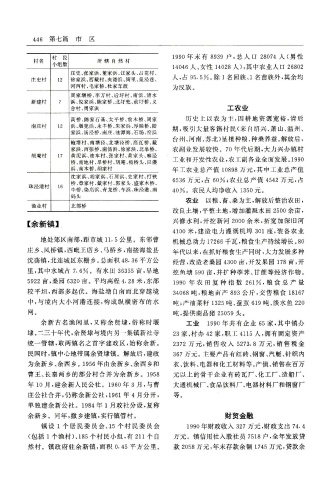 为 余 新 乡 、余 西 乡 。1956年 由 余 新 乡 、余 西 乡 和 衣 、饮 料 、电 器 和 化 工 材 料 等 。产 值 、销 售 在 百 万