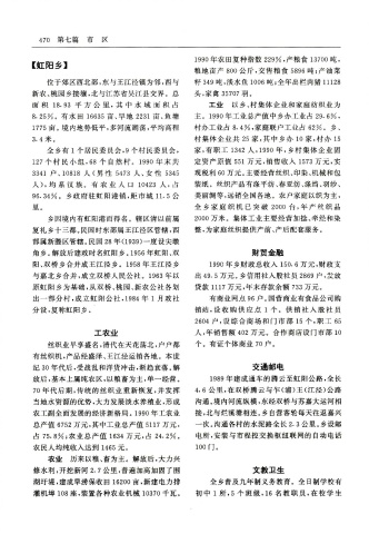 8 . 2 5 % 。 有 水 田 16635亩 、旱 地 2231亩 、鱼 塘 主 。 1990年 工 业 总 产 值 中 乡 办 工 业 占 29.6% ,